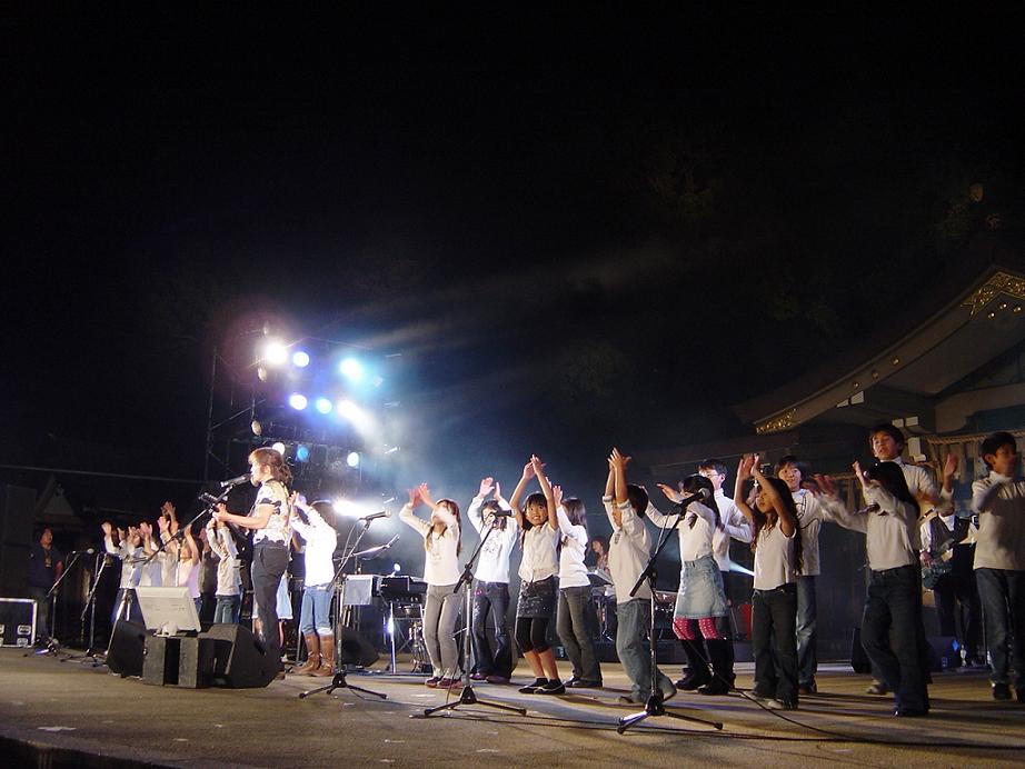 鎮守の杜コンサートが最高潮に盛り上がり、いよいよ本編最後の曲へと入っていく。ここで、子供たちが呼び込まれた。